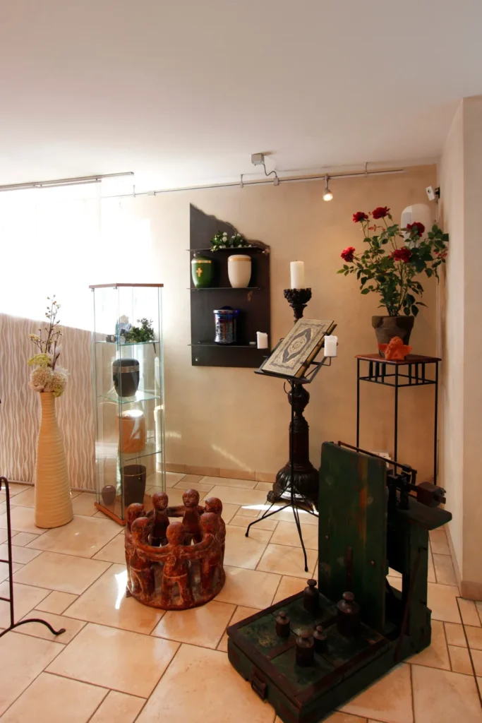 Unser Abschiedsraum bietet Ihnen die Möglichkeit sich am geöffneten oder geschlossenen Sarg von Ihrem verstorbenen Angehörigen zu verabschieden.